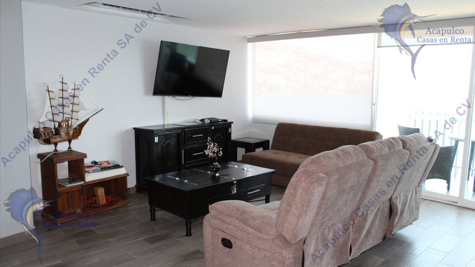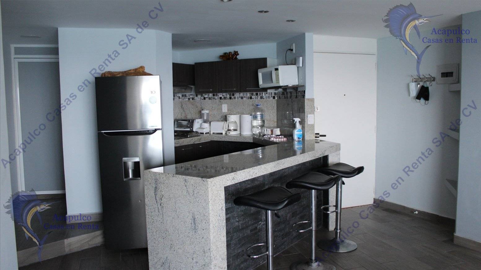 Renta Casas, villas y Departamentos ideal para vacaciones, para Navidad y Año nuevo sin olvidar la semana santa y pascua, por día o por semana. En la Bahía de Acapulco. Este Departamento se encuentra ubicado en el Condominio La Palapa sobre la Bahia de Acapulco, con una Vista Espectacular. El Departamento cuenta con 2 recámaras,